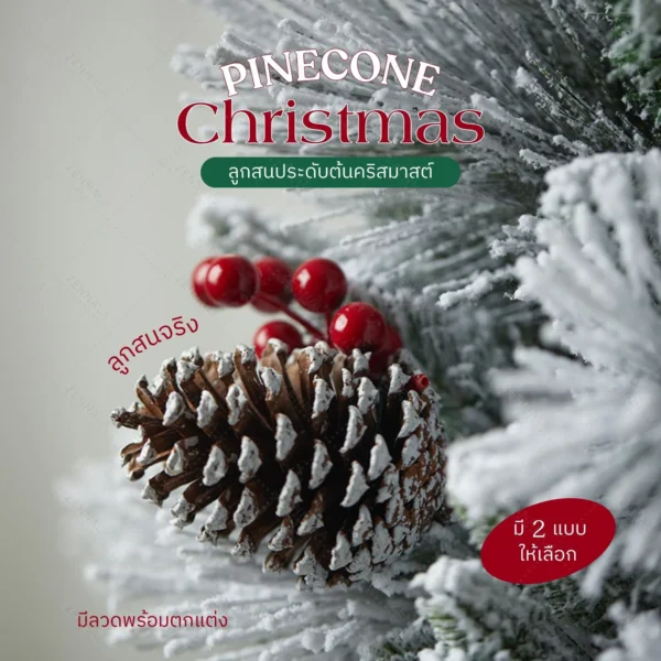 - ลูกสนแต่งหิมะ พร้อมกิ่งฮอลลี่