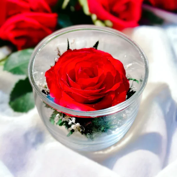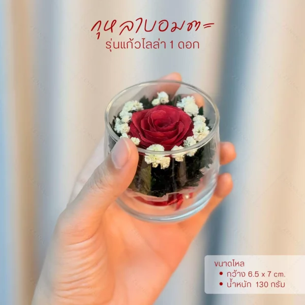 • กุหลาบสดในโหลแก้วอย่างดี เก็บได้นาน 5-10 ปี